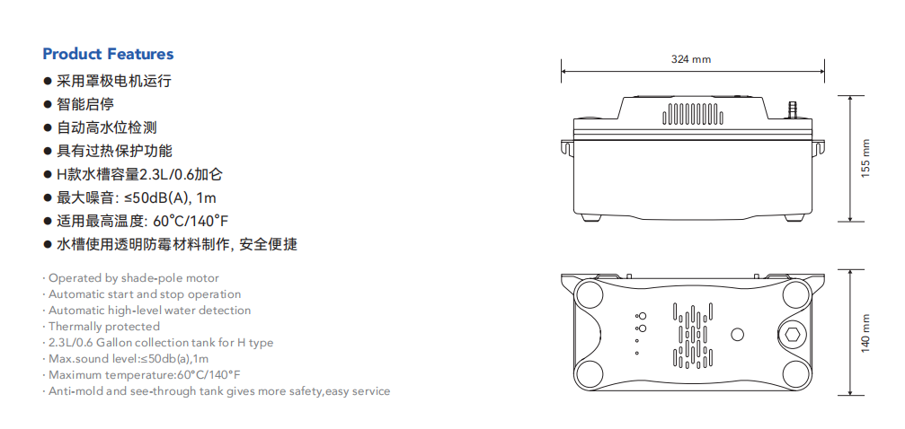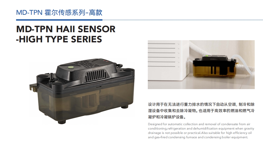 设计用于在无法进行重力排水的情况下自动从空调,制冷和除湿设备中收集和去除冷凝物。也适用于高效率的燃油和燃气冷凝炉和冷凝锅炉设备。
